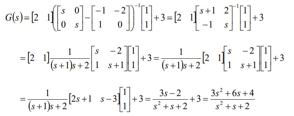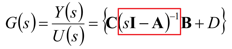 det(A-λE)와 같은 형태입니다. (λ를 s에 대응) A의 eigenvalue가 전달함수 G(s)의 극점(pole)이 됨을 확인할 수 있습니다.