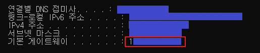 내 공유기 IP 주소 확인은 cmd - ipconfig - 기본 게이트웨이에서 확인할 수 있습니다.