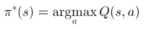 Q가 이를 알려준다면 에이전트는 어떤 정책(policy)를 취하면 될까요? 간단합니다. 최대 값인걸 찾으면 됩니다. 최대값을 주는 행동을 찾아 그 행동을 하면 됩니다. 이를 수식으로 표현하면 다음과 같습니다.