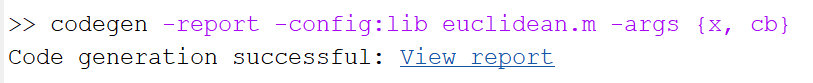 codegen -report -config:lib file_name.m -args {arg1, arg2, ...}